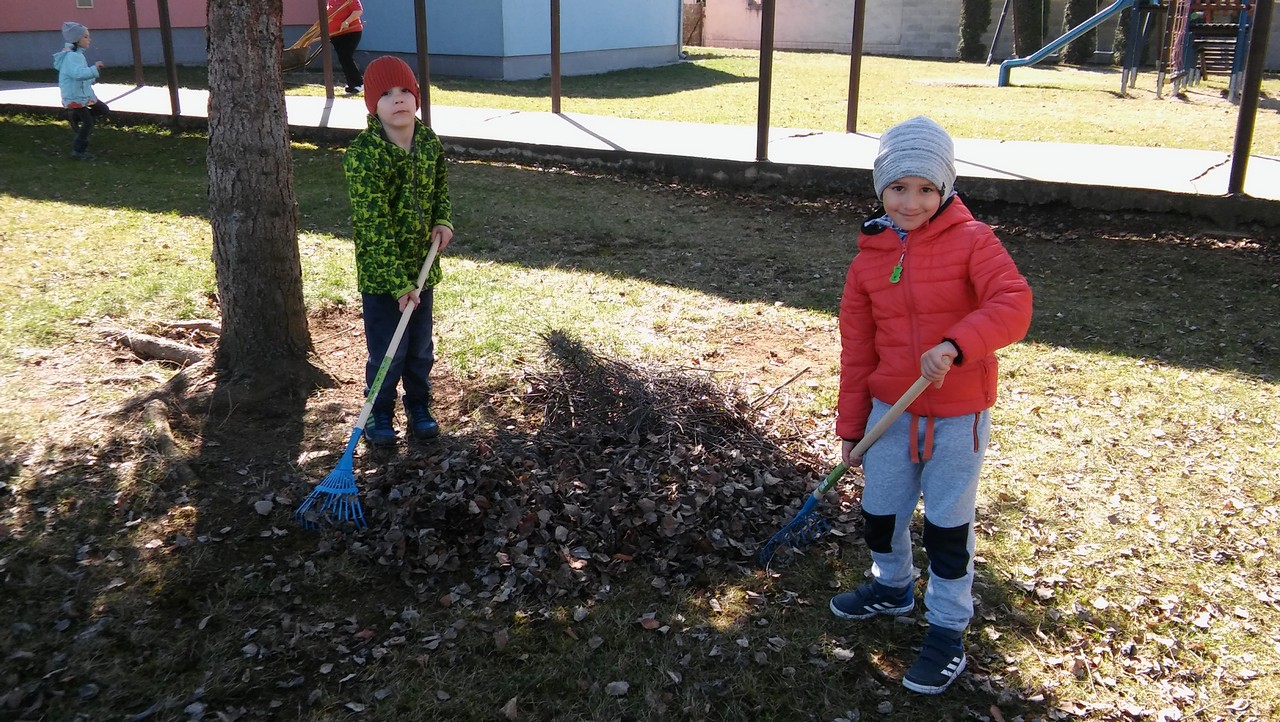 Jar je už tu a treba sa postarať aj o okolie našej materskej školy. Do upratovania areálu sa zapojili aj naši maličkí. Jedno dopoludnie dostali do rúk hrabličky, vrecia a hrabali napadané lístie. O túto aktivitu bol mimoriadne veľký záujem a očividne hrabličiek nemáme stále dosť. Deti sa pri práci striedali, každý z nich si to mohol vyskúšať a spokojní z dobre vykonanej práce sa vrátili do svojich tried.